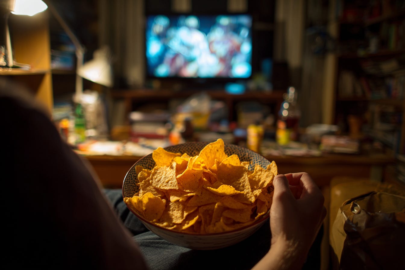 “Dude, it’s been at least a week since you had a proper workout. You haven’t surfed in, what, two months? You still haven’t finished the major article that you promised yourself you were going to publish. Three days last week you failed to leave the house. Your heart rate hasn’t exceeded 95 beats per minute since March. You’ve fallen off your nighttime stretching routines. You’re flossing less. And here you are, eating a bag of Fritos at 11pm, watching NHL highlights on YouTube. 👏🏼 “