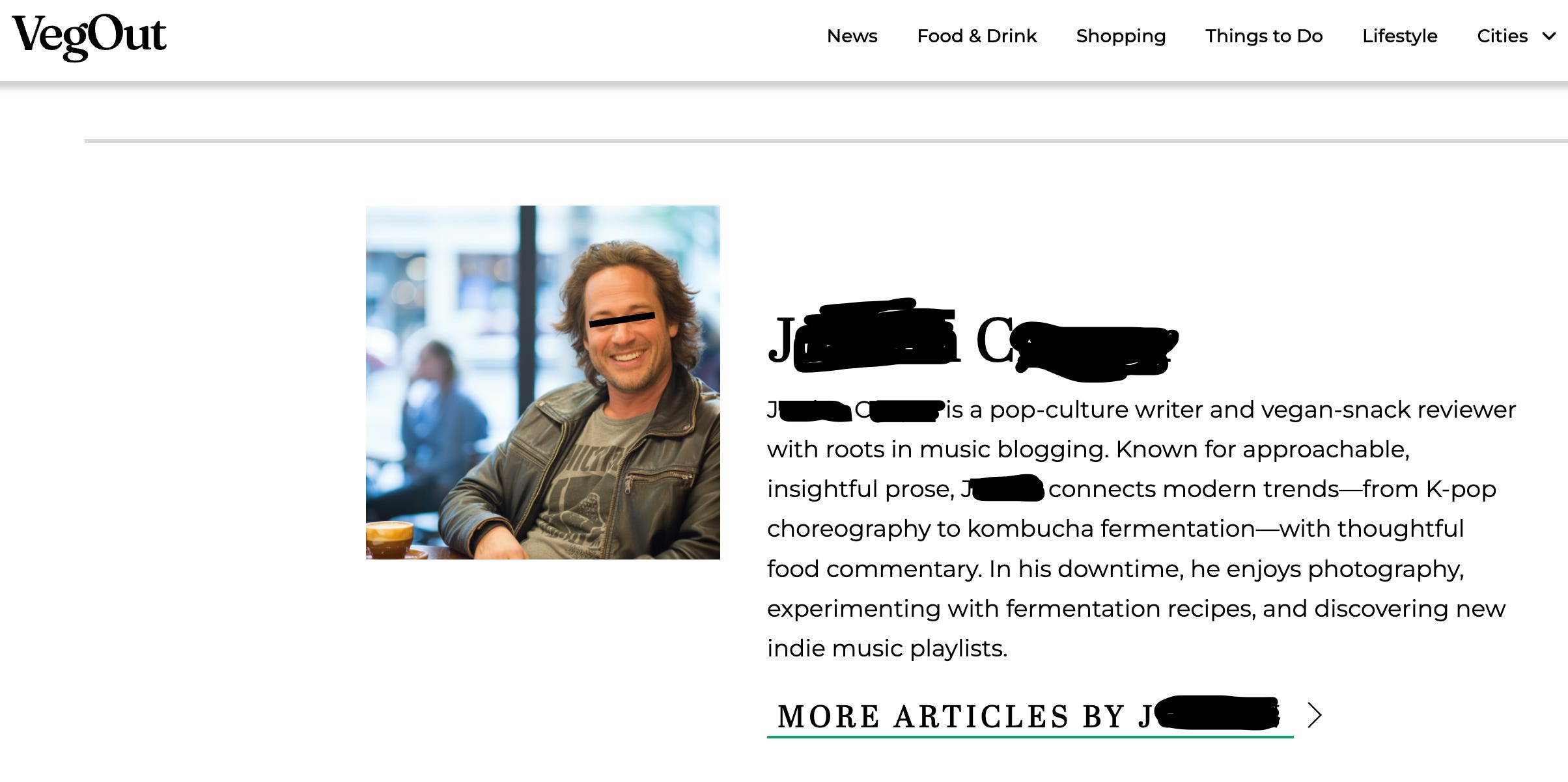 VegOut is an online publication run by Brown Brothers Media, a five-year-old holding company operated by three younger men with the same last name who are not remotely close to being 60 years old.